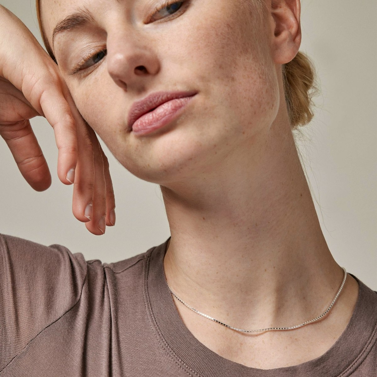 Box chain er en firkantet kæde, der giver et cool og unikt udtryk med en glansfuld overflade. Halskæden har en lang justerbar del, hvilket gør det nemt at tilpasse den i forhold til dine andre smykker.