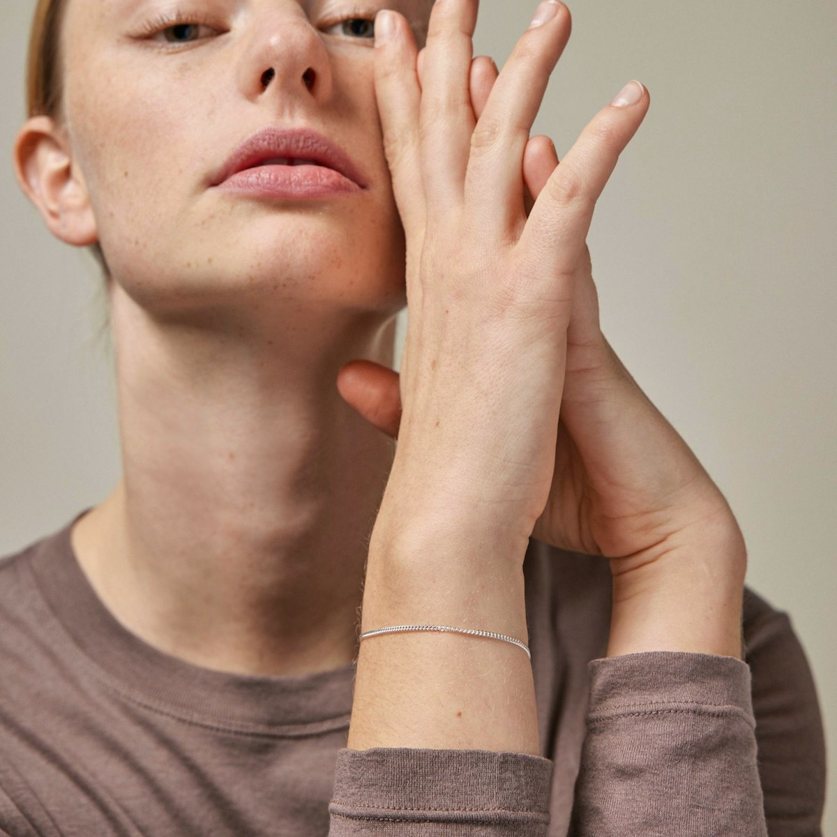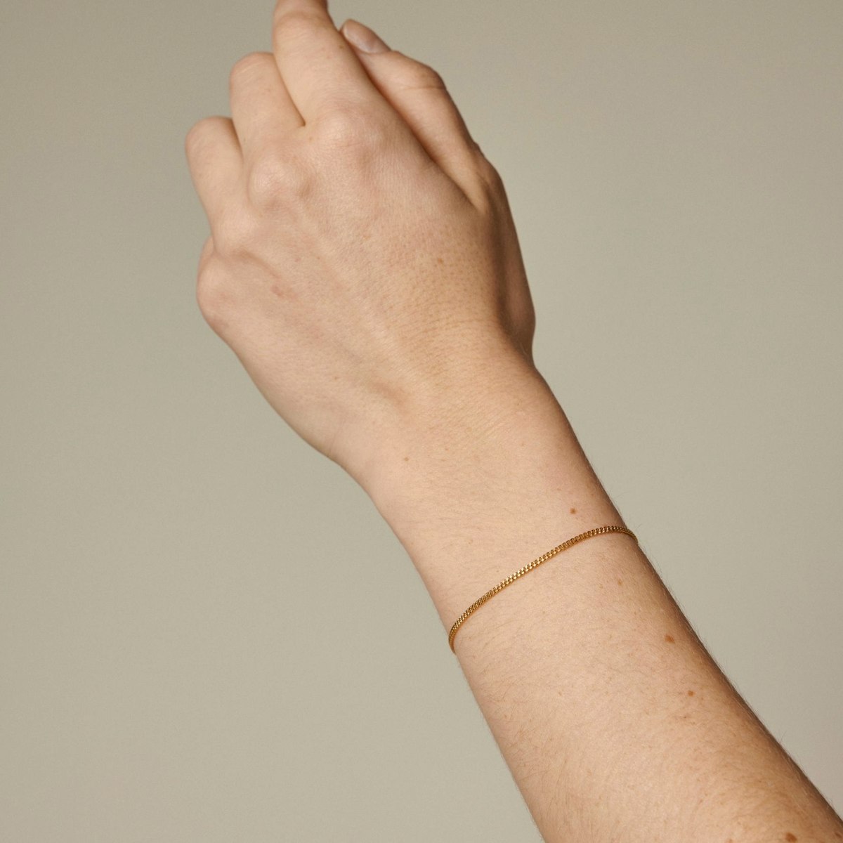 Armbåndet Curb chain, også kendt som panzer kæde, er en klassisk favorit og et must-have i din smykkesamling. Denne variant er slank og facetteret, hvilket giver en smuk og behagelig pasform omkring håndleddet.
