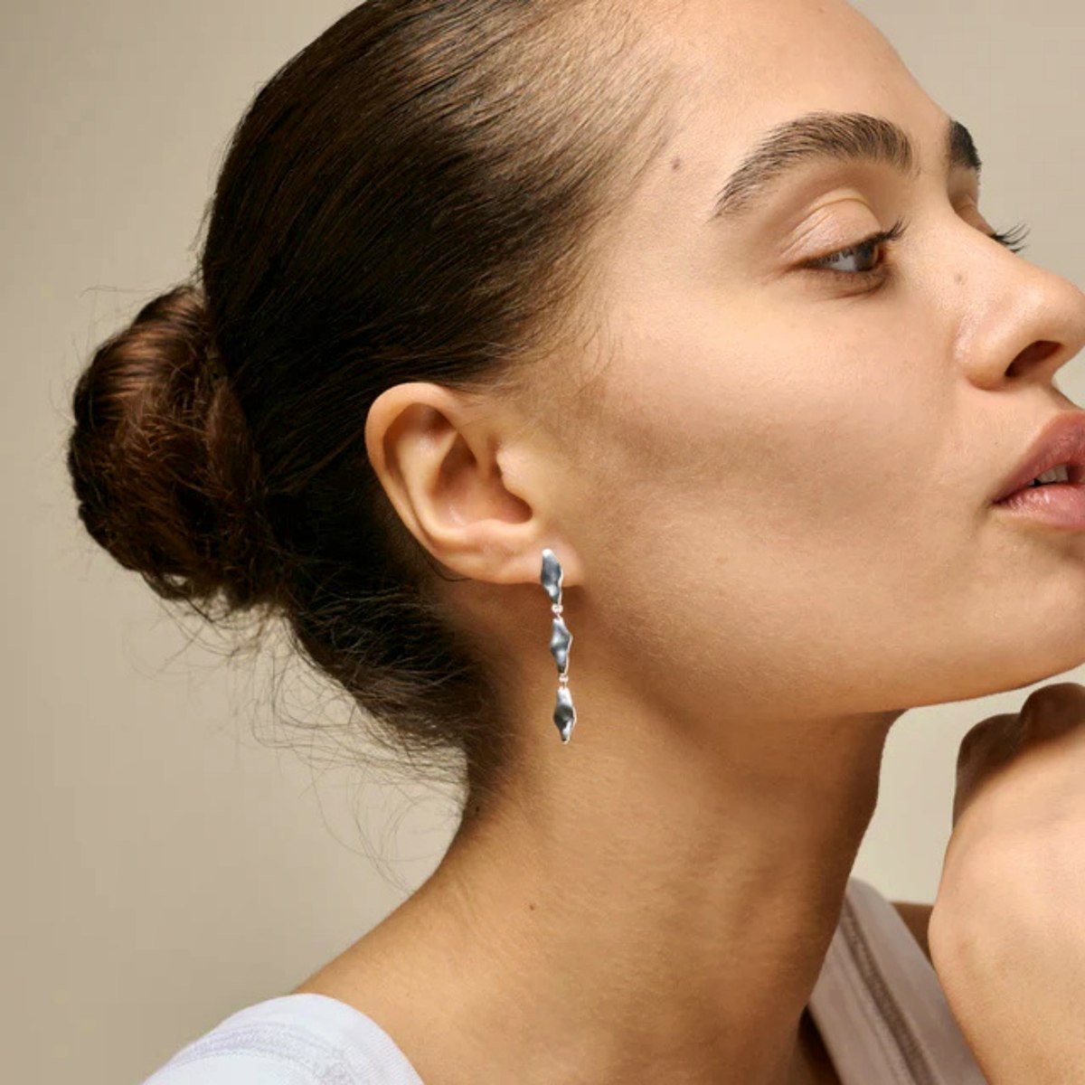 India Medium Earrings fra ENAMEL Copenhagen er en hyldest til det organiske og sanselige formsprog, som kendetegner brandets nye AW25 kollektion. Øreringene er skabt i et levende design, hvor bløde, dråbeinspirerede led smelter sammen og danner en bevægelig silhuet, der elegant følger dit ansigts konturer. Resultatet er et smykke, der balancerer råhed og finesse på én gang, og som uden anstrengelse løfter dit look – uanset om du bærer det til hverdag eller ved særlige lejligheder.