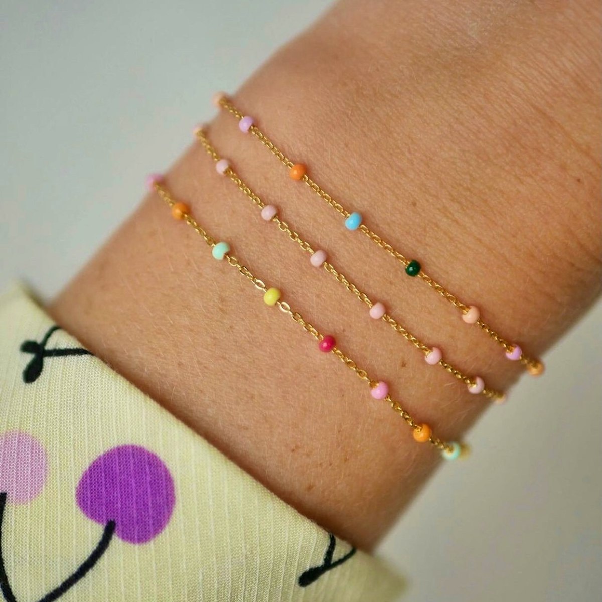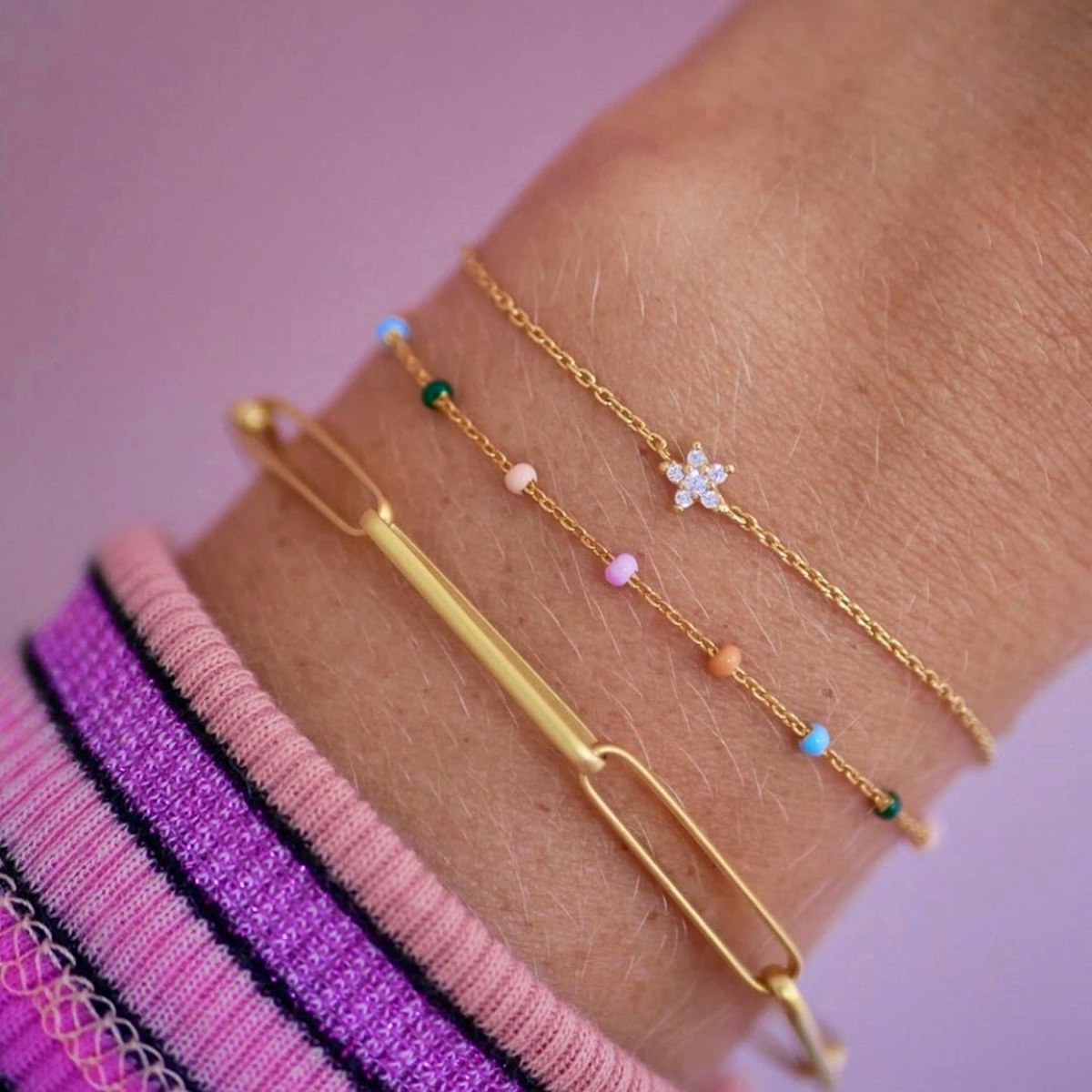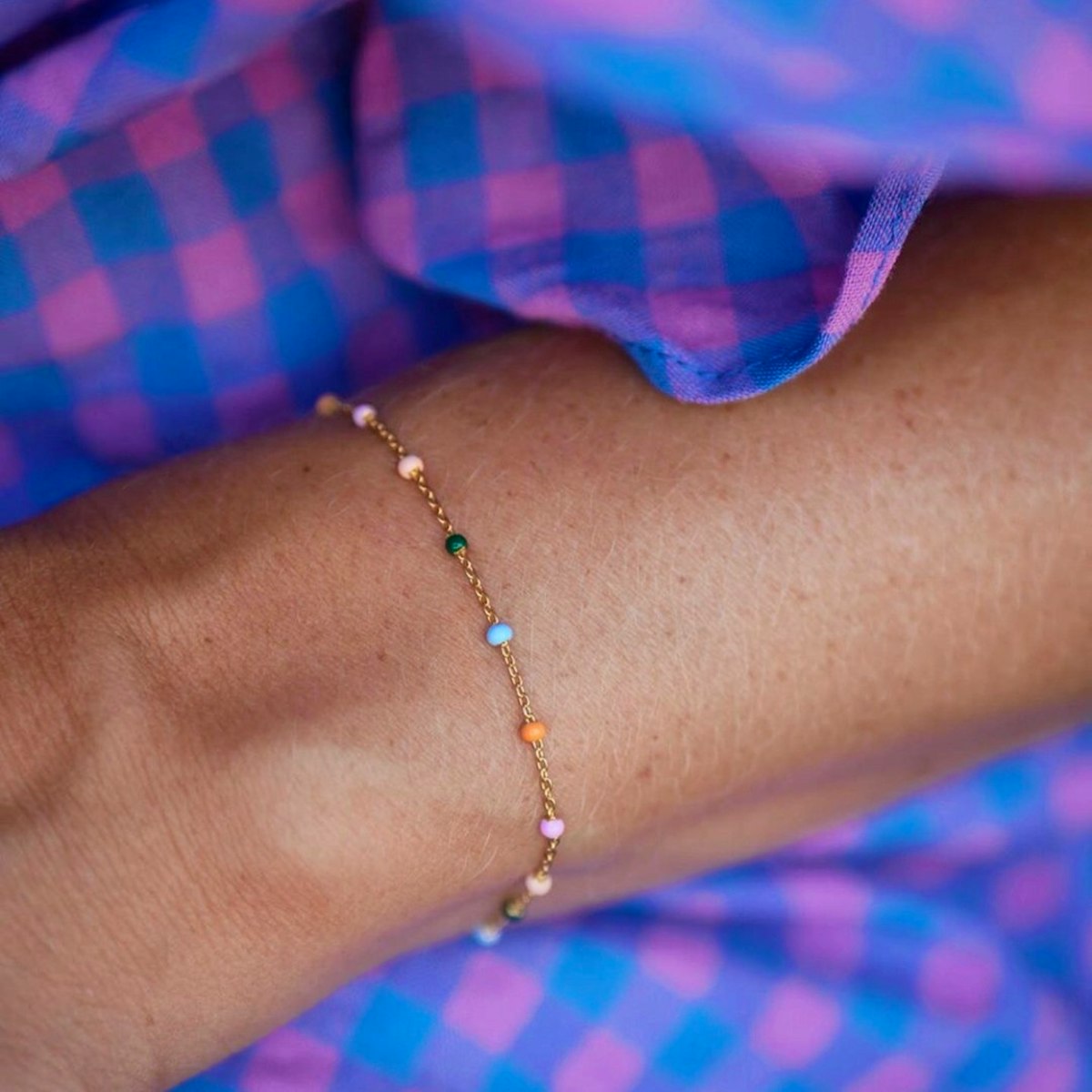 Lola armbånd er en fin kæde med små emaljer. Armbåndet giver en fin farverig detalje og kan perfekt kombineres med flere armbånd.