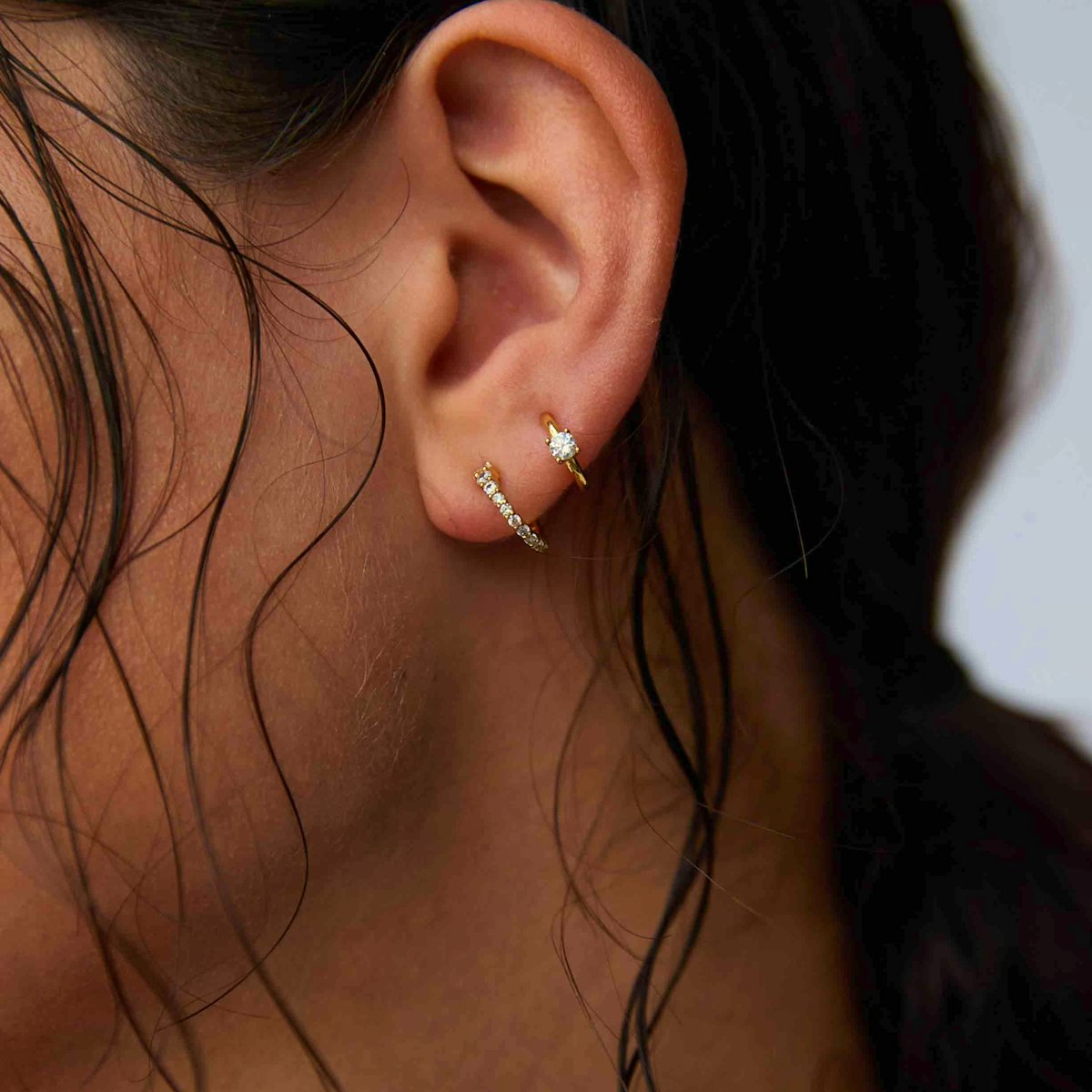 En ideel tilføjelse til hverdagens outfit. Håndlavet i 18K forgyldt sterlingsølv, med zirkoner. Diameter: 1,1 cm.