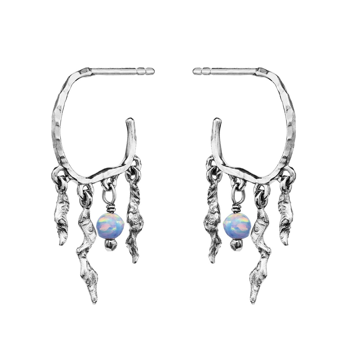 Bayou øreringen fra Maanesten er en fortryllende ørering, der kombinerer naturens rå skønhed med et elegant og symbolsk design. På den fine creol hænger bølgende slanger med en smeltet tekstur, der giver et unikt, flydende udtryk. Slangens kurver fanger lyset og skaber et levende spil af skygger og refleksioner. Smykket fuldendes af en dybblå opal, hvis magiske skær tilføjer et strejf af mystik og farve til designet. Øreringen kan bæres alene for et subtilt, men karakterfuldt udtryk, eller kombineres med andre Maanesten øreringe for et mere personligt look.