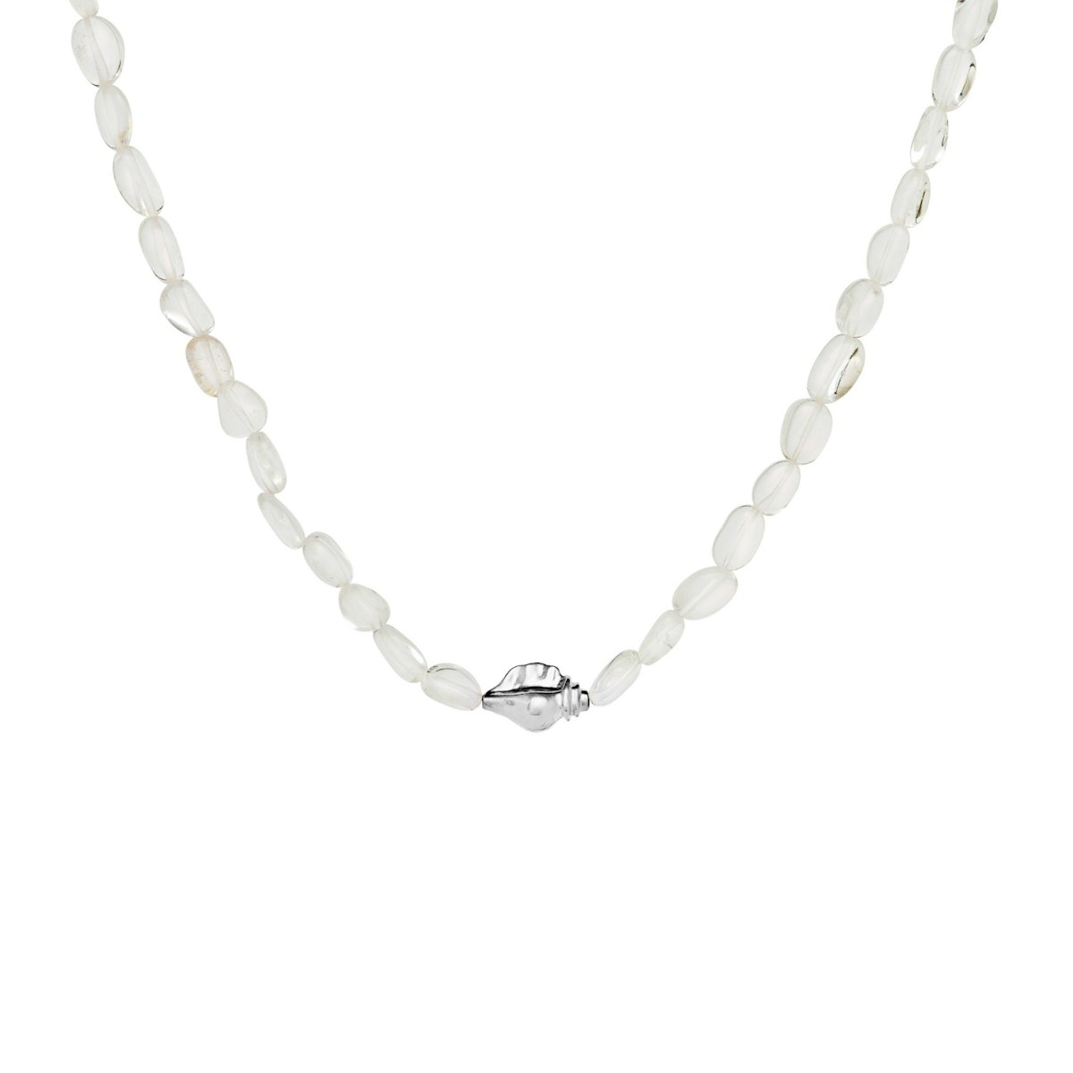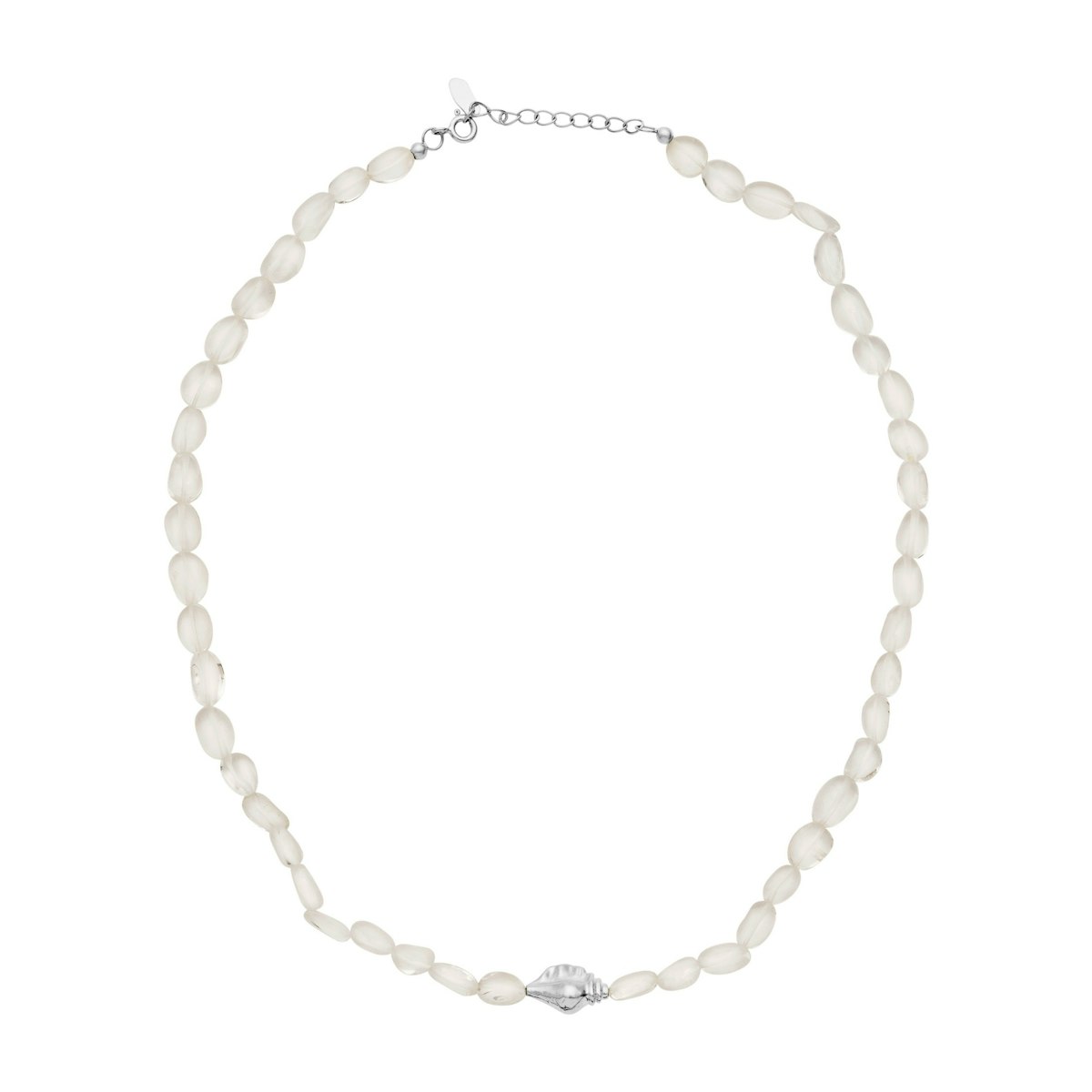 Det fine konkylievedhæng symboliserer forbindelsen til havet og naturens skønhed. Konkylien har i mange kulturer været et tegn på intuitiv visdom og transformation, hvilket gør denne halskæde til mere end blot et smykke – den er en spirituel amulet.