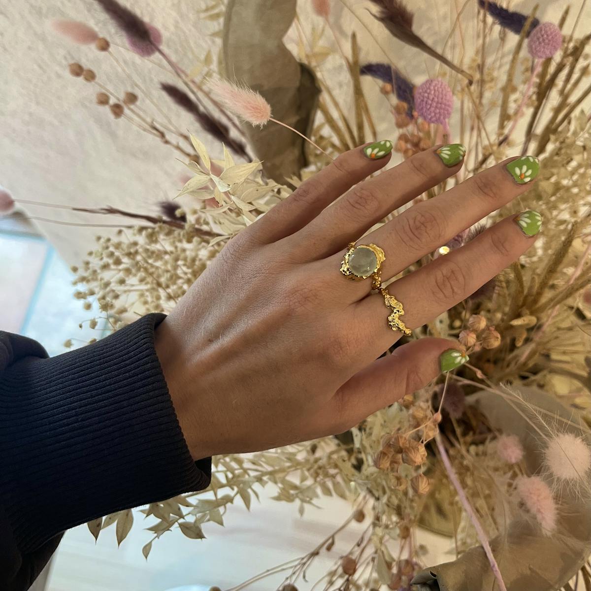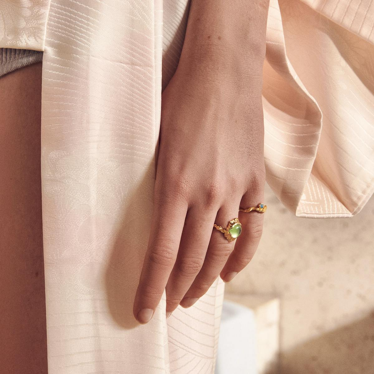 Der Göttinnenring Prehnit von Maanesten ist der Ring für alle, die auf ihrem persönlichen Weg Vertrauen und Frieden schaffen wollen. Der Ring mit Prehnit als Stein ist mit dem Herzchakra verbunden und schwingt mit einer schützenden Energie, die es dir ermöglicht, Leichtigkeit in deinem Leben zu schaffen. Verwenden Sie ihn als Energiewerkzeug während der Meditation, wenn Sie tiefer in Ihre eigene Vorstellungskraft und Ihre Lebensträume eindringen wollen.