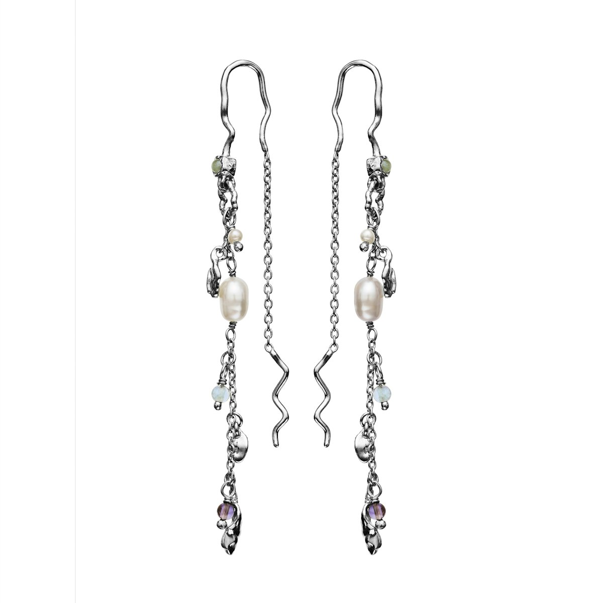 Poppy Earrings fra Maanesten er et unikt smykke, der kombinerer feminine detaljer med et kunstnerisk og organisk design. De lange, elegante øreringe måler 61,5 mm og bevæger sig let, når de bæres, hvilket giver dem et levende og sofistikeret udtryk. Smykket er udsmykket med forskellige sten og en delikat ferskvandsperle, der tilfører et naturligt og eksklusivt touch. De snoede detaljer i metallet skaber et råt, men raffineret look, der understreger Maanestens evne til at forene det klassiske med det moderne.