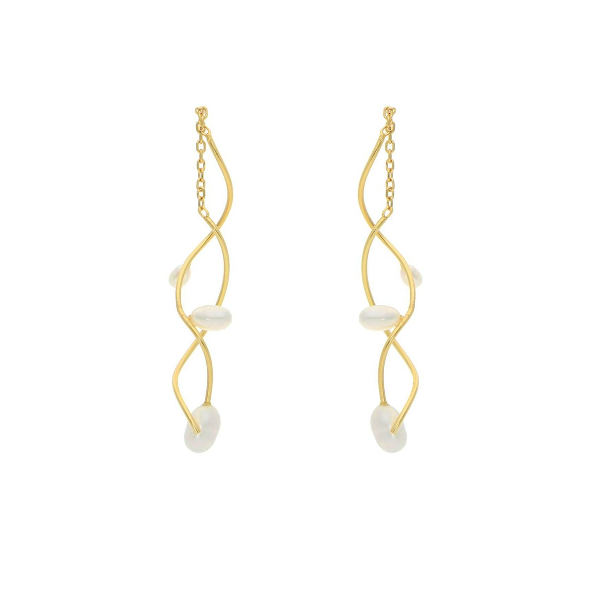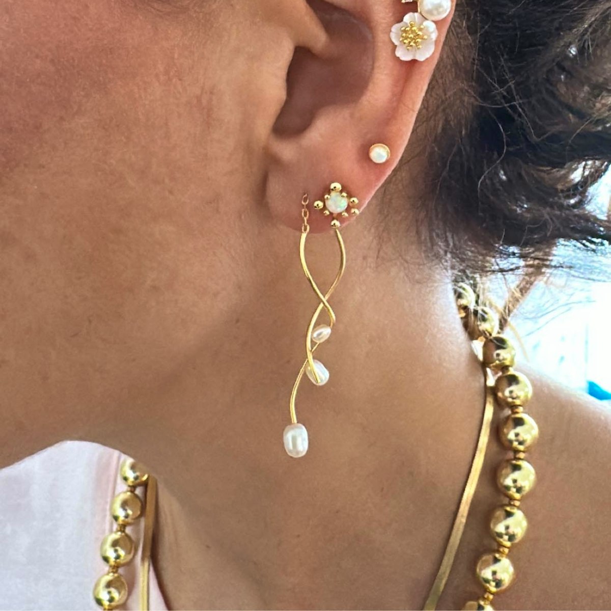 Mit ihren eleganten 4 cm Länge schaffen die Ohrringe einen leichten und schwebenden Look, der das Licht wunderschön einfängt und sich anmutig mit Ihnen bewegt. Die Kombination aus der goldenen Oberfläche und den weichen, organischen Perlen macht Angelina zur perfekten Wahl - egal, ob Sie auf eine Party gehen, zur Arbeit oder sich einfach ein besonderes Schmuckstück gönnen möchten.