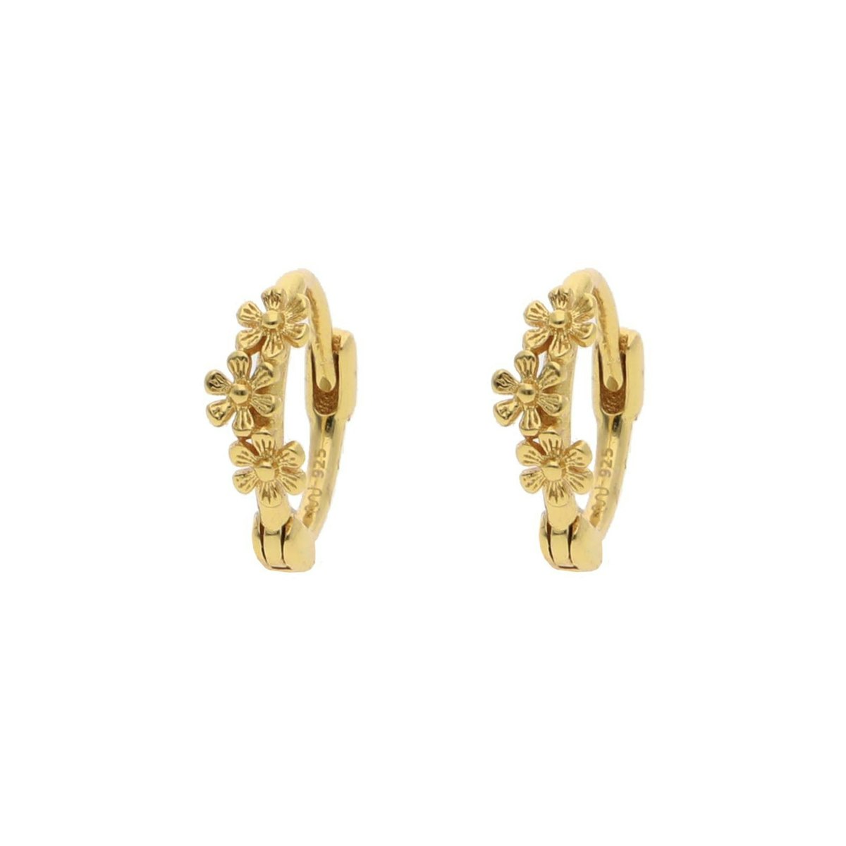 Die Vanessa Mini Hoops sind eine feminine und abenteuerliche Interpretation des klassischen Creolenohrrings. Sie sind aus 24 Karat vergoldetem, recyceltem Sterlingsilber gefertigt und mit kleinen, zarten Blumen rund um den Ring verziert. Mit einem Durchmesser von 12 Millimetern haben sie eine diskrete Größe, die sie bequem im Alltag tragen lässt und gleichzeitig einen einzigartigen und eleganten Look verleiht.