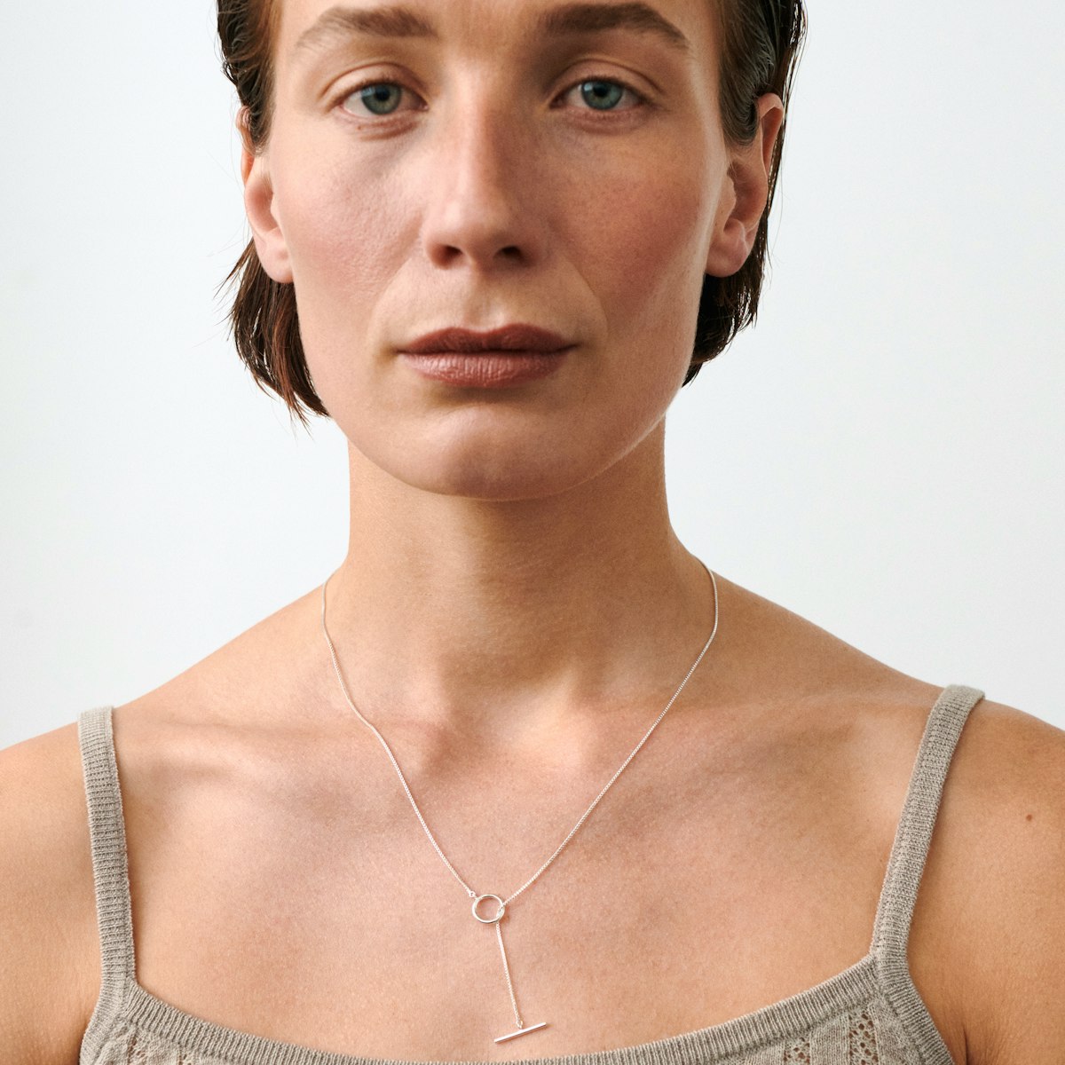 Die Hope-Halskette ist eine elegante und schlichte Halskette, die modernes Design mit einem zeitlosen Look verbindet. Das dekorative T-Verschluss-Design besteht aus einem schlanken Steg und einem schönen runden Ring, der nicht nur als Verschluss, sondern auch als eigenständiges ästhetisches Element dient. Die glänzende Oberfläche reflektiert sanft das Licht und verleiht der Halskette ein harmonisches, ausgewogenes Aussehen, das sie sowohl allein als auch in Kombination mit anderem Schmuck schön macht.
