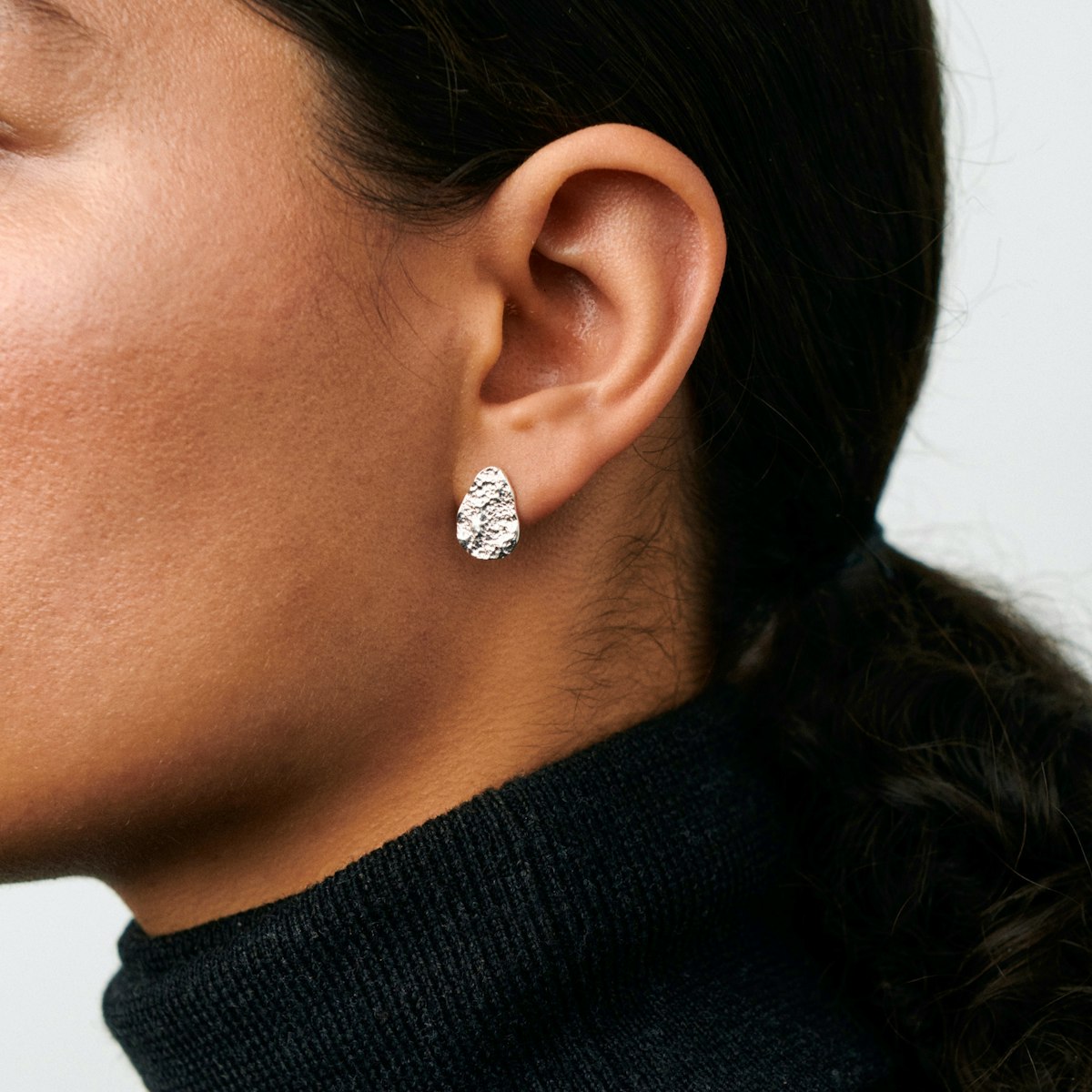 Die eleganten Nature Earsticks von Pernille Corydon sind ein Paar tropfenförmige Ohrstecker mit einem harmonischen und zeitlosen Design. Die Ohrstecker messen 10 mm in der Breite und 14 mm in der Höhe, was ihnen eine auffällige Größe verleiht, ohne aufdringlich zu wirken. Die Form ist sanft abgerundet, um einen organischen und ausgewogenen Look zu erzielen. Die Oberfläche ist gebürstet und strukturiert, inspiriert von der Oberfläche herbstlicher Bäume, die bei Lichteinfall leichte Variationen erzeugen. Das Ergebnis ist ein Paar Ohrringe, das sowohl für den Alltag als auch für festliche Anlässe geeignet ist. Das Modell ist in Sterlingsilber oder vergoldetem Silber mit 18 Karat Gold erhältlich und wird im Zweierset verkauft.