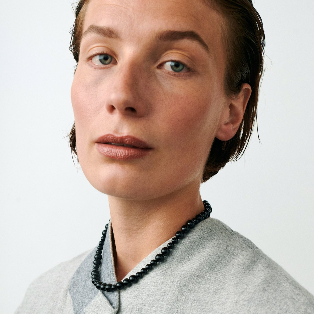 Die Night Sky Necklace ist eine wunderschöne Statement-Halskette, die die Ruhe, Tiefe und das Geheimnis der Nacht einfängt. Die schwarzen Onyx-Steine variieren elegant in ihrer Größe und schaffen einen lebendigen, organischen Look und ein natürliches Gleichgewicht um den Hals. Die glänzende Oberfläche der Steine fängt das Licht wunderschön ein und reflektiert den klaren Glanz des Winters, wodurch die Halskette auf subtile und raffinierte Weise erstrahlt. Das Ergebnis ist ein Schmuckstück, das sowohl auffällig als auch elegant ist - perfekt als Kontrast zu hellen Outfits oder als harmonische Ergänzung zu den tiefen, dunklen Farben des Winters.