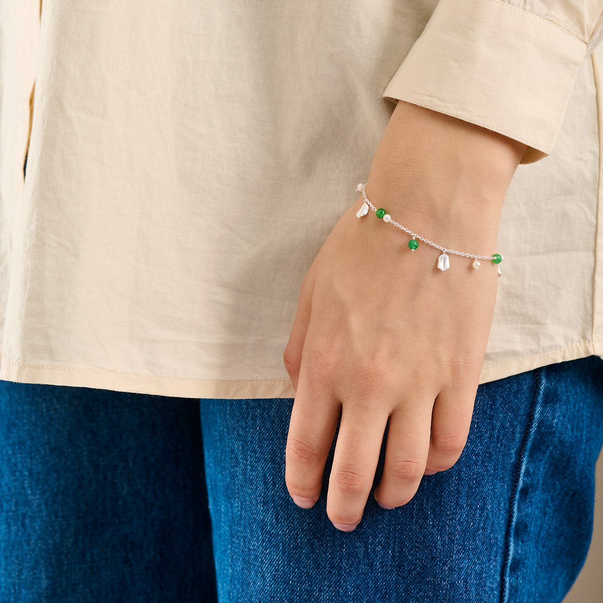Str: 16-19 cm, justerbar Sten: Ferskvandsperle, Green Aventurine.