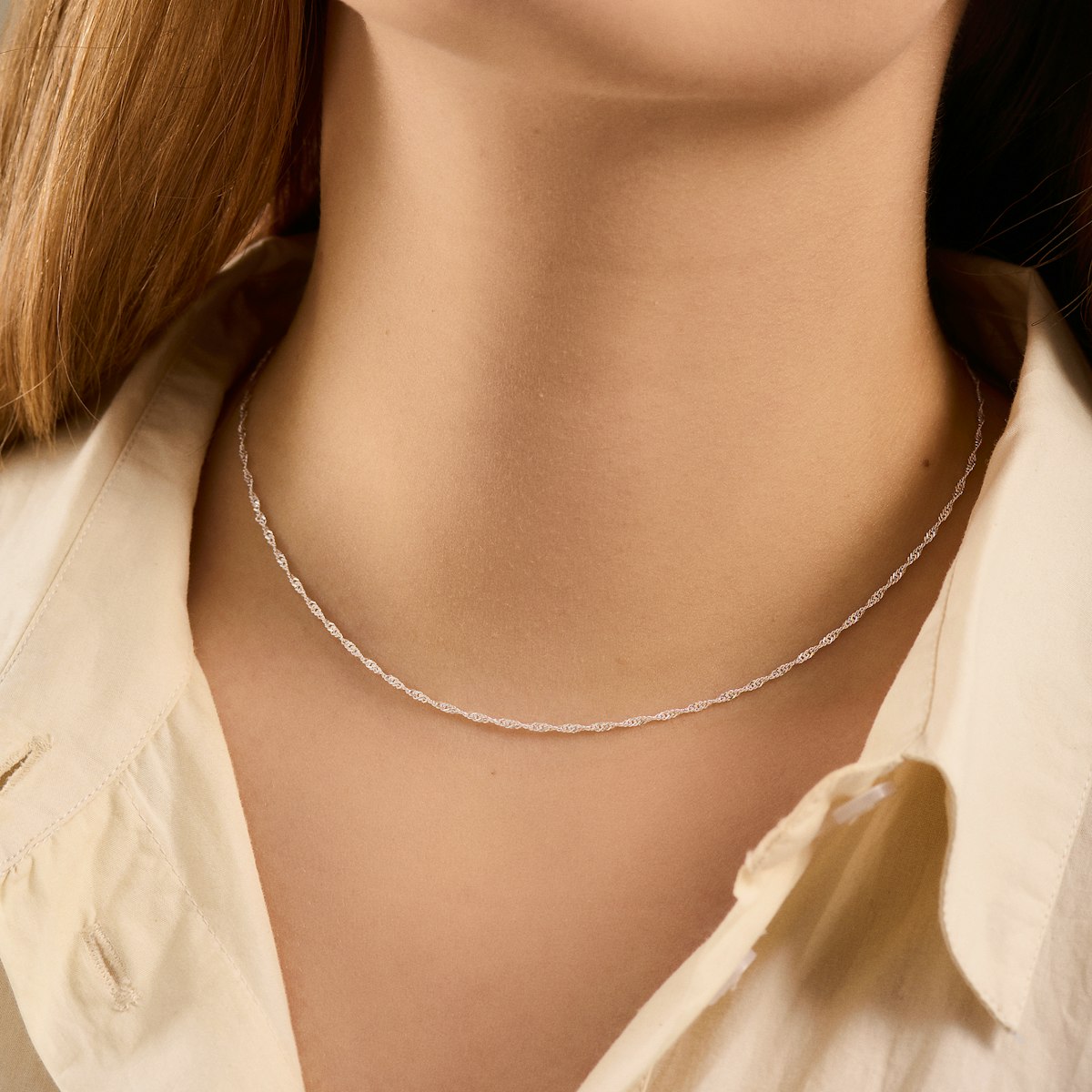 Die zarte Singapur-Kette gibt es in zwei verschiedenen Längen: 42 cm und 80 cm.