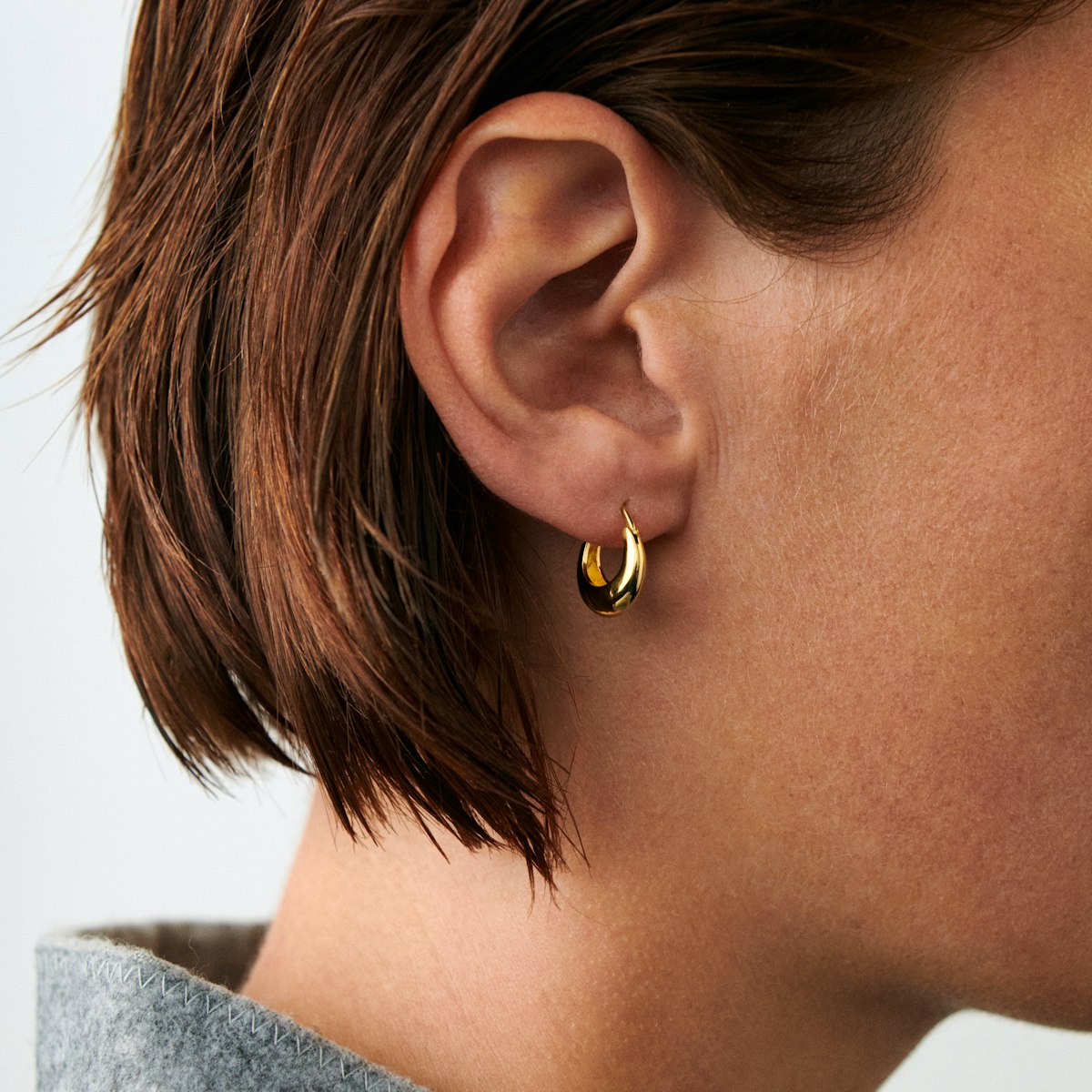 Die Small Atlas Earrings sind ein elegantes Paar Ohrringe, das die zeitlose ovale Form zelebriert, die Pernille Corydons Designuniversum charakterisiert. Sie schmiegen sich sanft an das Ohrläppchen und schaffen einen harmonischen und ausgewogenen Look. Die glänzende Oberfläche bildet einen schönen Kontrast zu den sanften Rundungen und reflektiert das Licht wunderschön, wodurch die Ohrringe sowohl glänzen als auch modern wirken. Mit einem Außendurchmesser von 14 mm, einem Innendurchmesser von 10 mm und einer großzügigen Dicke von 4 mm erhalten Sie ein kleines, aber markantes Paar Ohrringe, das Ihrem Look einen klassischen und minimalistischen Touch verleiht. Um einen optimalen Tragekomfort zu gewährleisten, sind die Ohrringe hohl, so dass sie den ganzen Tag über bequem zu tragen sind.