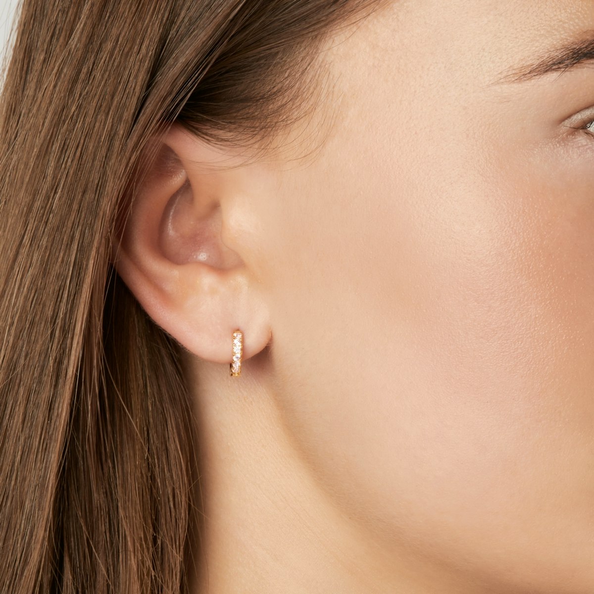 Diese stilvollen Ohrringe von Sif Jakobs Schmuck sind in vier einzigartigen Versionen erhältlich, die Ihrem Stil eine elegante und raffinierte Note verleihen. Die Ohrringe aus 925er Sterlingsilber, das mit 18 kt. Gold überzogen ist, haben eine polierte Oberfläche und sind mit facettierten weißen Zirkonia verziert, die einen zeitlosen und luxuriösen Look schaffen. Die warme Goldoberfläche verleiht ihnen einen besonders eleganten Touch, der sowohl für den Alltag als auch für besondere Anlässe geeignet ist.