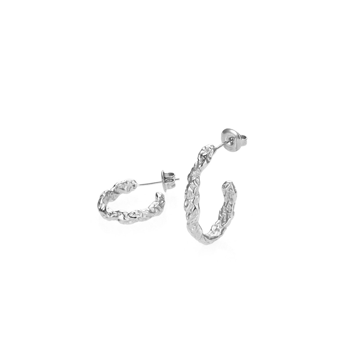 Øreringene er 100% recycled rustfrit stål med holdbar PVD-behandling. Smykket er lavet i rustfrit stål og belagt med med den ekstra holdbare PVD-behandling. Smykket har derfor, i forhold til smykker lavet i andre materialer, en uovertruffen slidstyrke og ridsefasthed. Smykker i rustfrit stål kan både klare sved, vand, fugt og parfume, og er derfor ekstremt holdbare.