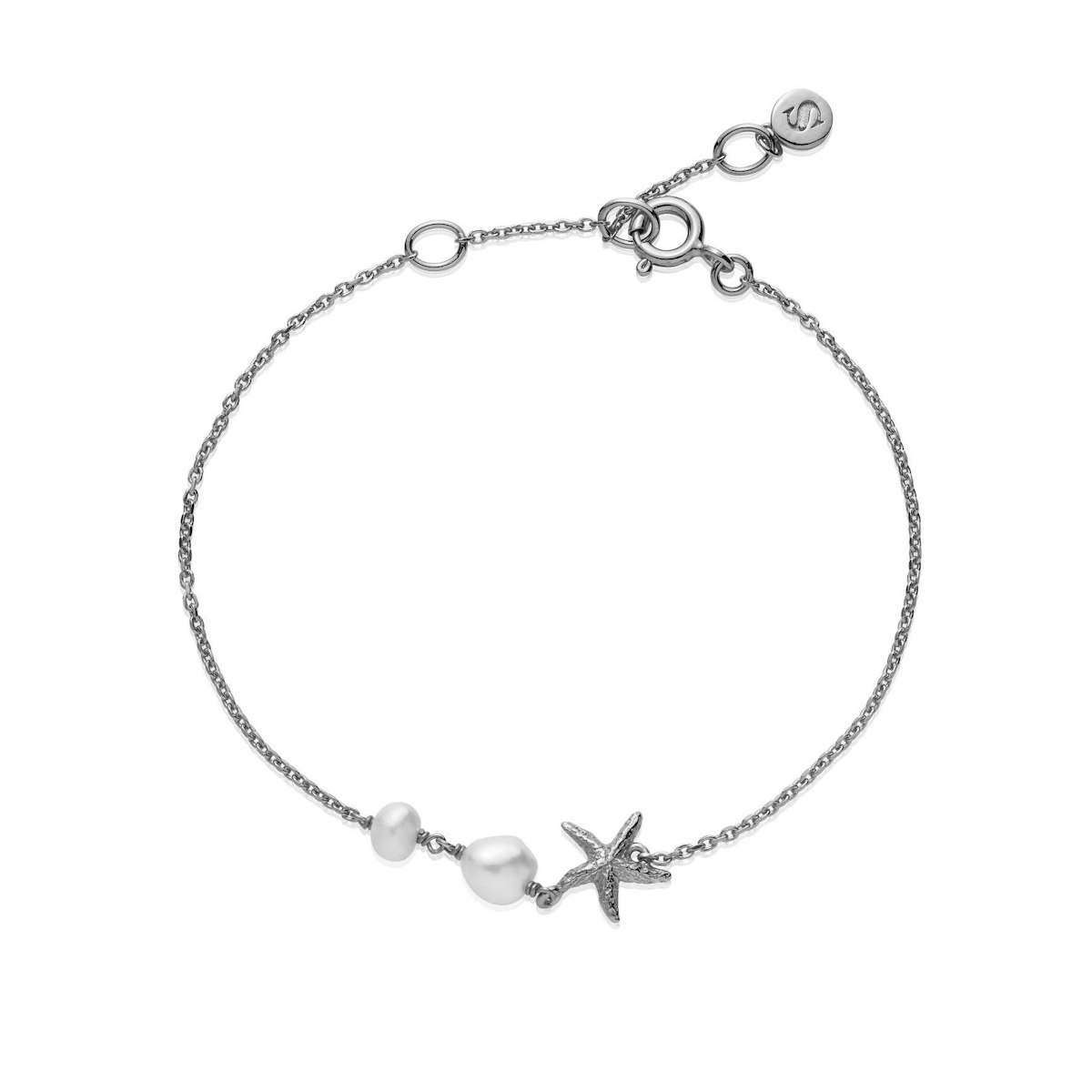 Hver lille detalje er nøje udformet, så de fine søstjerner får et naturligt og livligt udtryk, mens ferskvandsperlerne tilfører blød glød og elegance. Kombinationen af det maritime formsprog og de glatte, organiske perler skaber en tidløs charme, som gør armbåndet oplagt til både hverdag og særlige lejligheder.