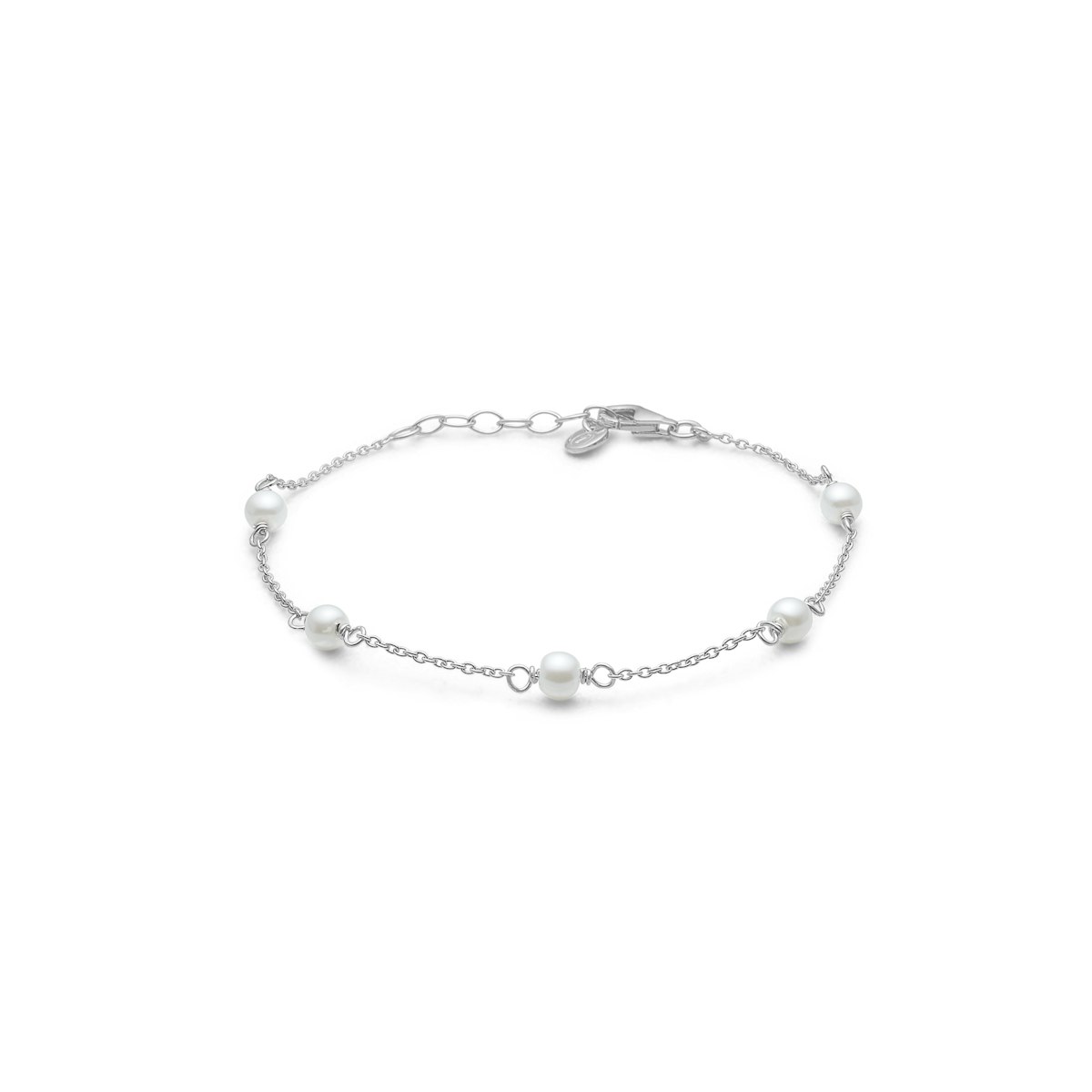 Shore Bracelet forener enkelthed og elegance i et elegant design, der emmer af tidløs femininitet. Armbåndet er smukt udsmykket med fem fine hvide perler, hver enkelt indrammet i sit eget lille led. Denne delikate detalje skaber et harmonisk og let udtryk, som gør armbåndet velegnet til både hverdagsbrug og mere festlige lejligheder. Det diskrete spil mellem perlernes naturlige glans og metallets varme tone giver smykket en rolig og sofistikeret karakter.